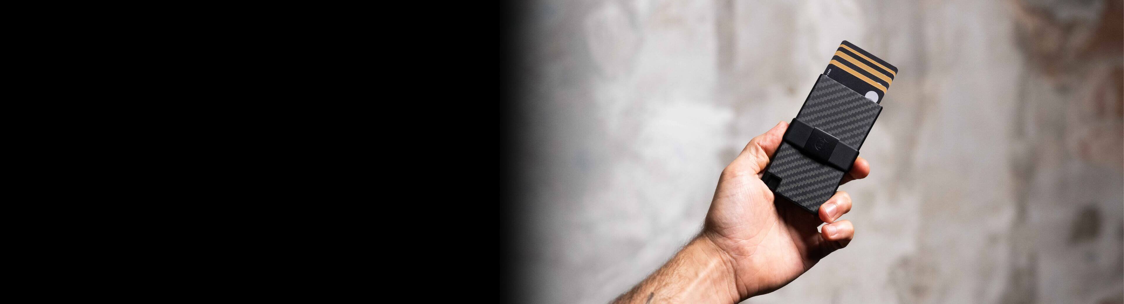 The carbon fiber pop-up wallet boasts quick card access at the push of a button and RFID-blocking layers that prevent data skimming, keeping your cards secure at all times.