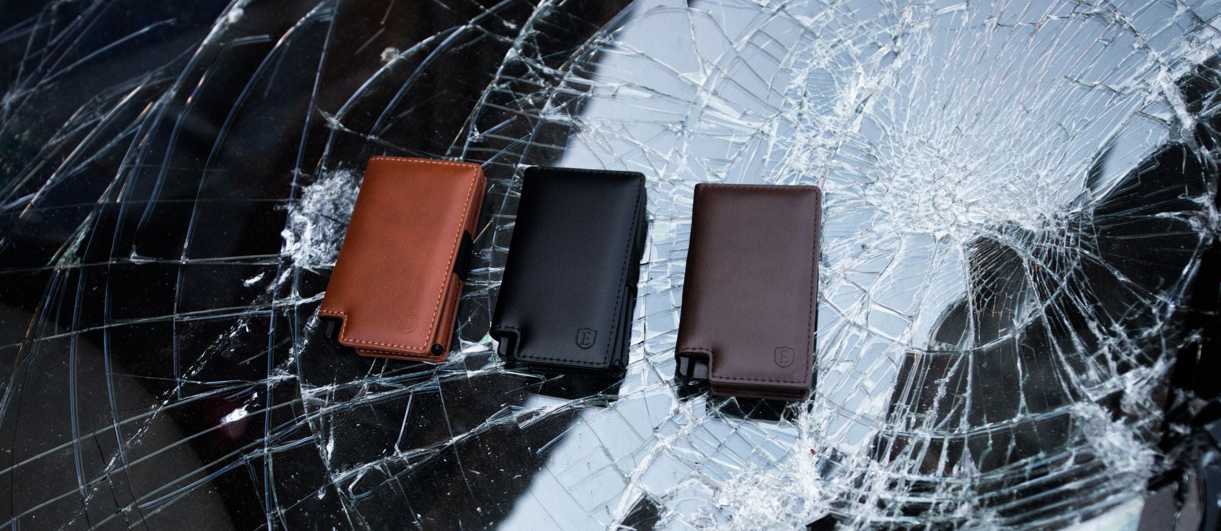 Our vegan leather wallets are crafted from recycled materials, specifically repurposed car windshields, and turned into scratch- and water-resistant leather.