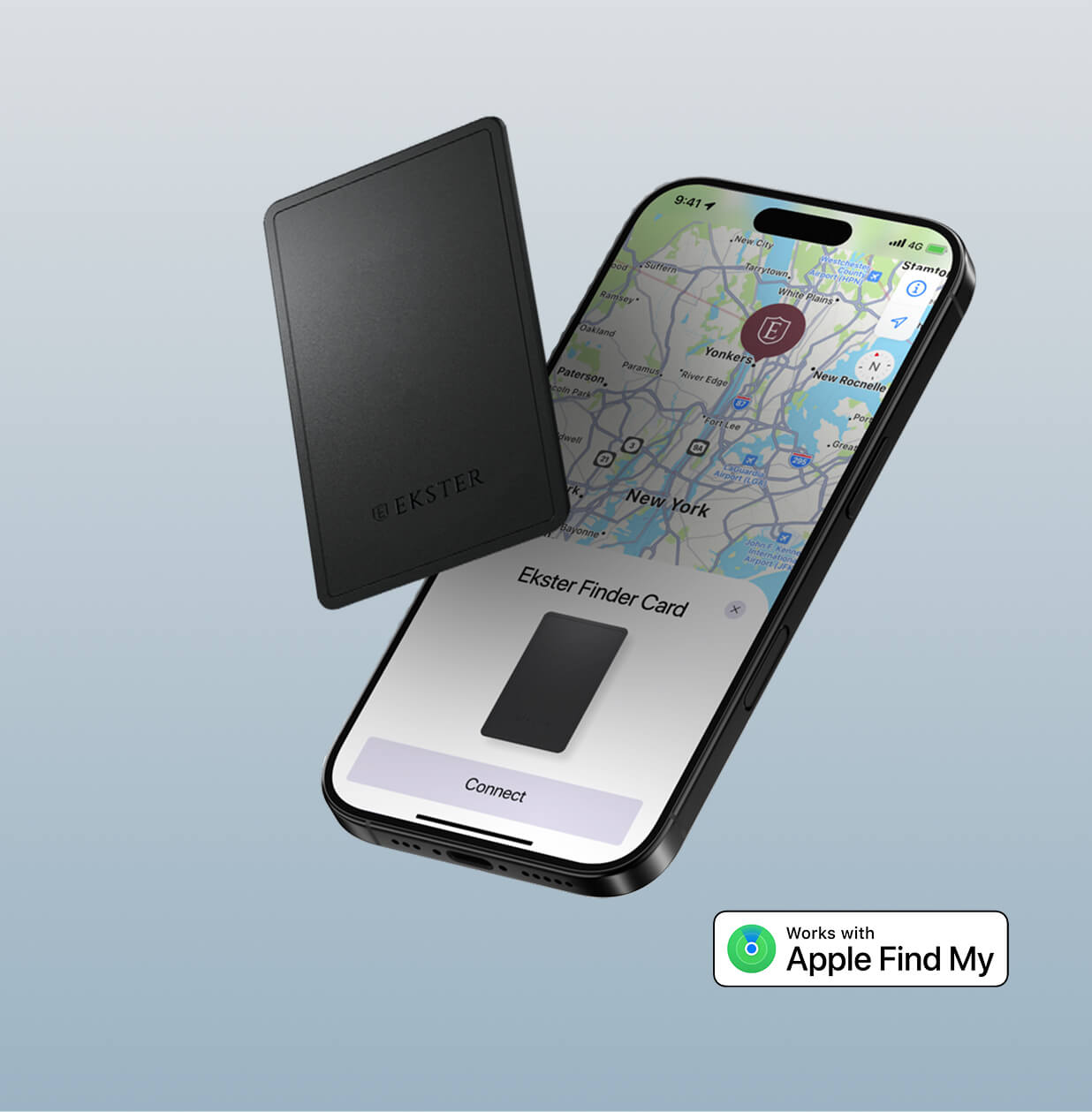 Turn any Ekster smart wallet into a trackable wallet with the Finder Card (for Apple or Android users).