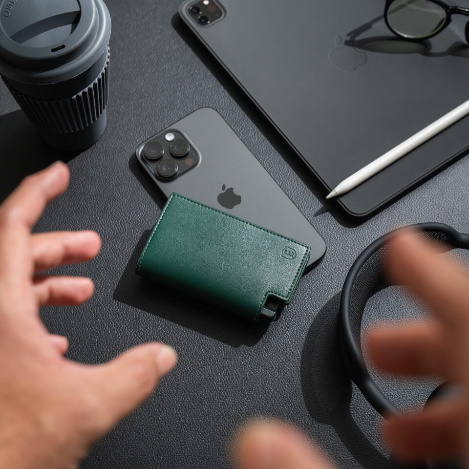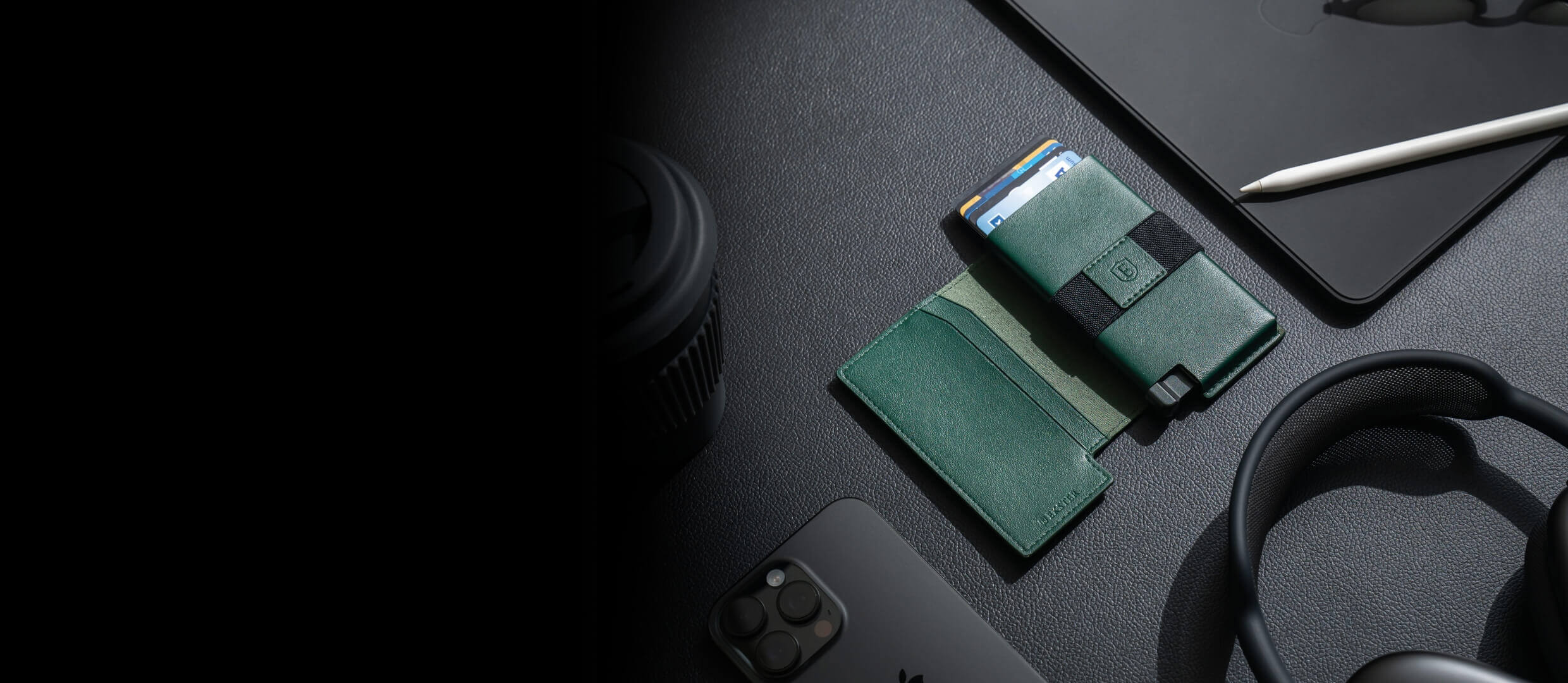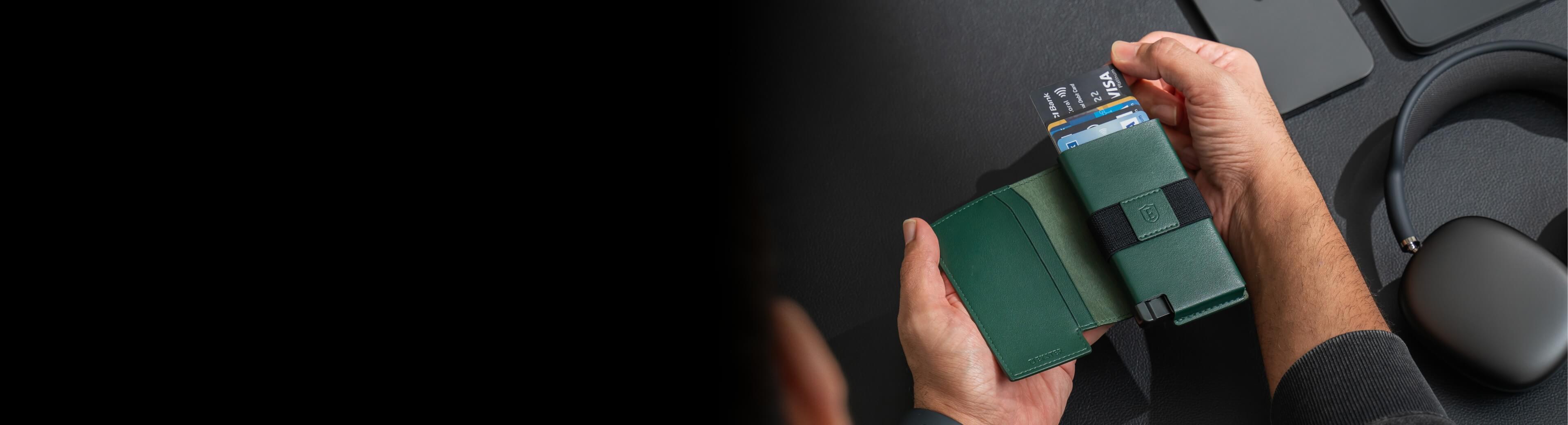 Our vegan cardholders and smart wallets give you quick card access at the push of a button, instantly fanning out your most-used cards.