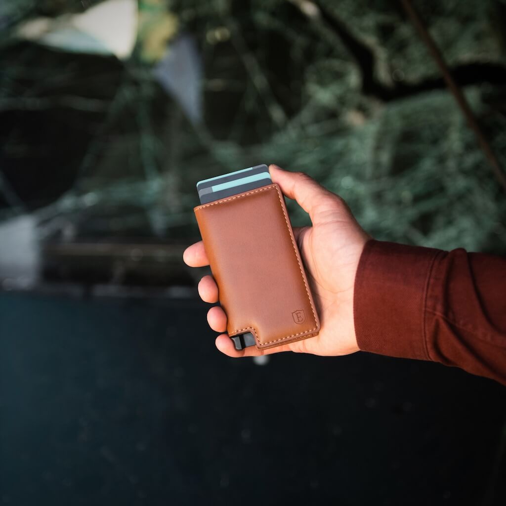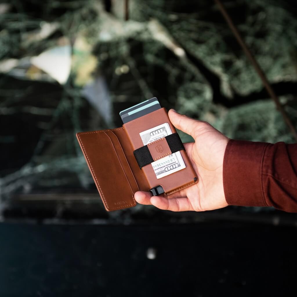 Our patented card ejection mechanism revolutionizes the way you interact with your wallet. Contents are quickly fanned out at the click of the button.
