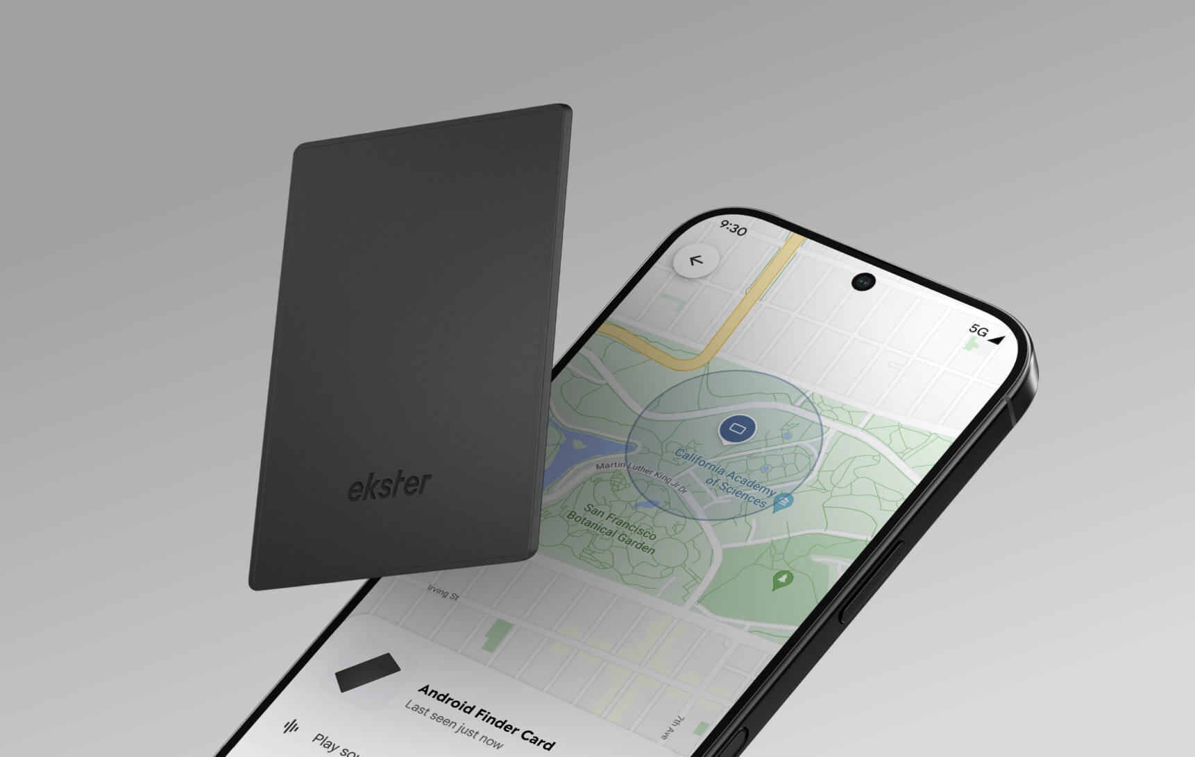 The Finder Card works with the Google Find My Device® network. Pair it with your phone to track it on a map, make it ring, and get left-behind alerts.
