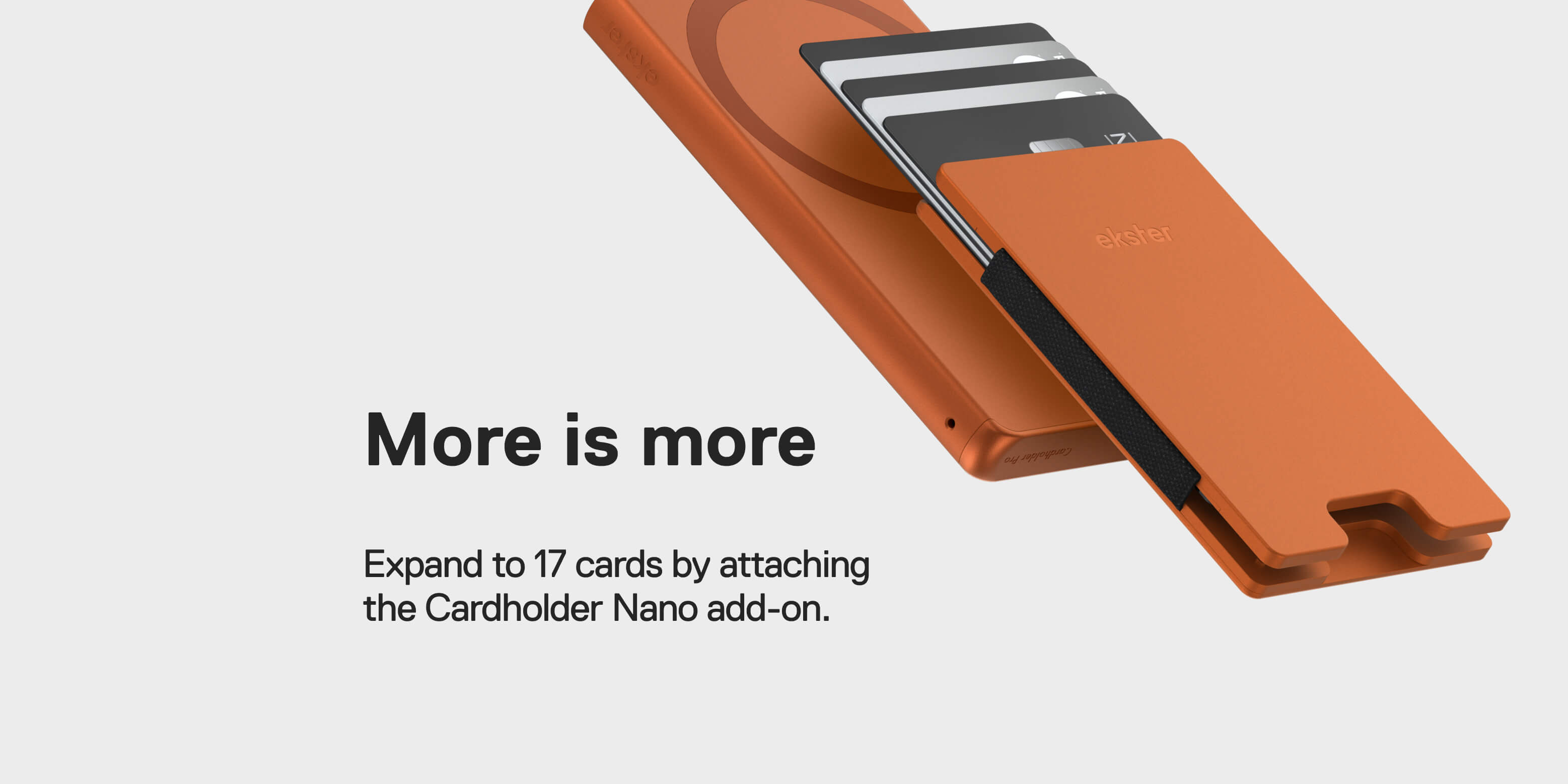 Our ecosystem is fully modular, letting you combine the Cardholder Pro, Nano, and other add-ons into a wallet that adapts to every day’s flow.