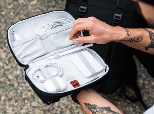 Picture this – you step onto the airplane, find your seat, and effortlessly reach for your flight essentials in one go from your Grid Backpack's perfectly organized Tech Case. No more fumbling or holding up the line while rummaging through your bag.