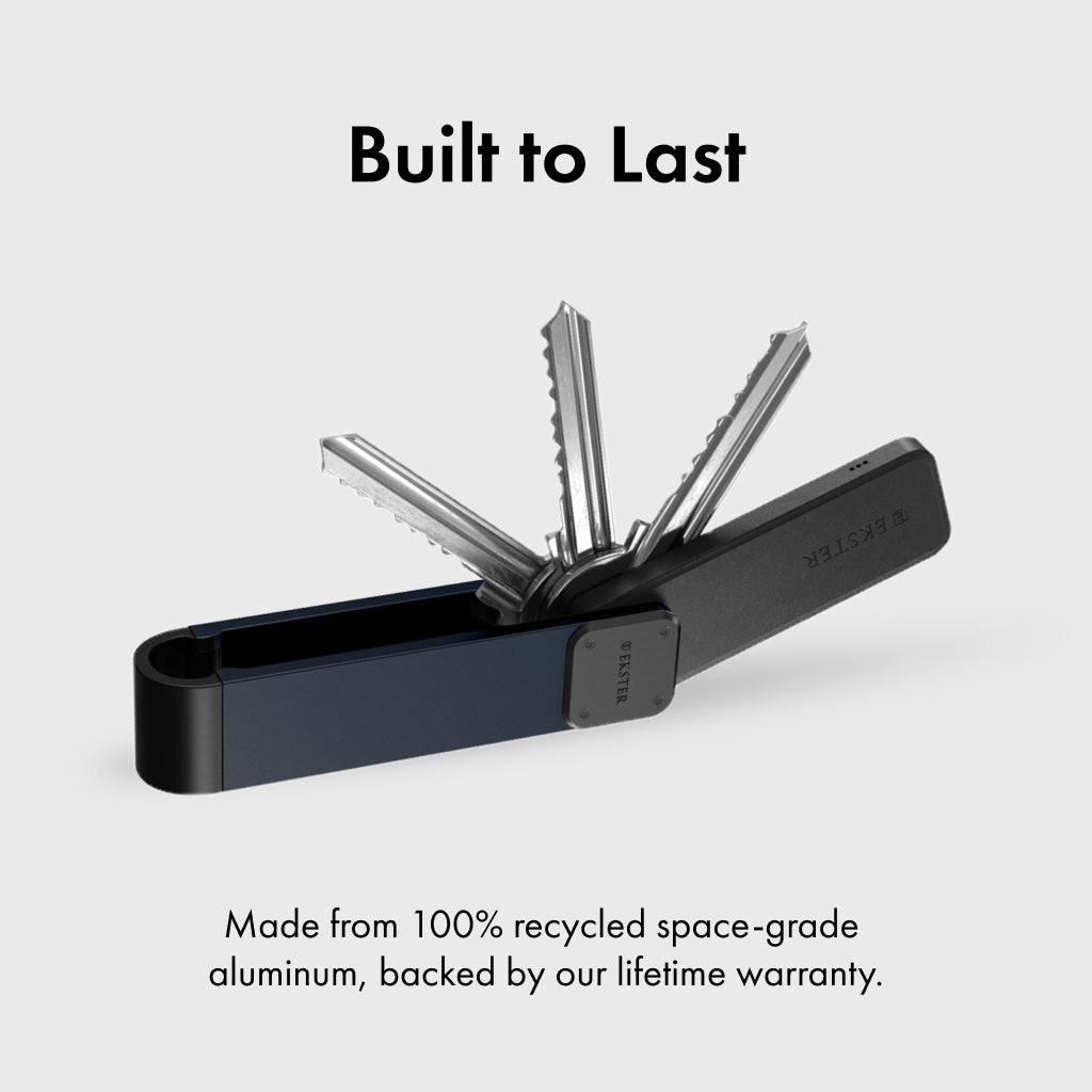 Just like the Cardholder Pro, the metal key holder is made from recycled 6061-T6 aluminum and backed by our lifetime warranty. It's as durable as it gets.