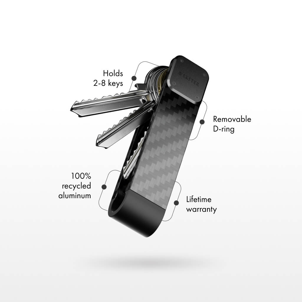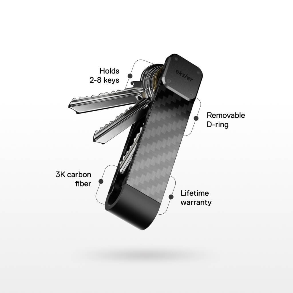Organize your keys in a slim, silent stack that never jingles in your pocket. Enjoy quick, one-handed access and attach larger keys like car fobs with the removable D-ring.
