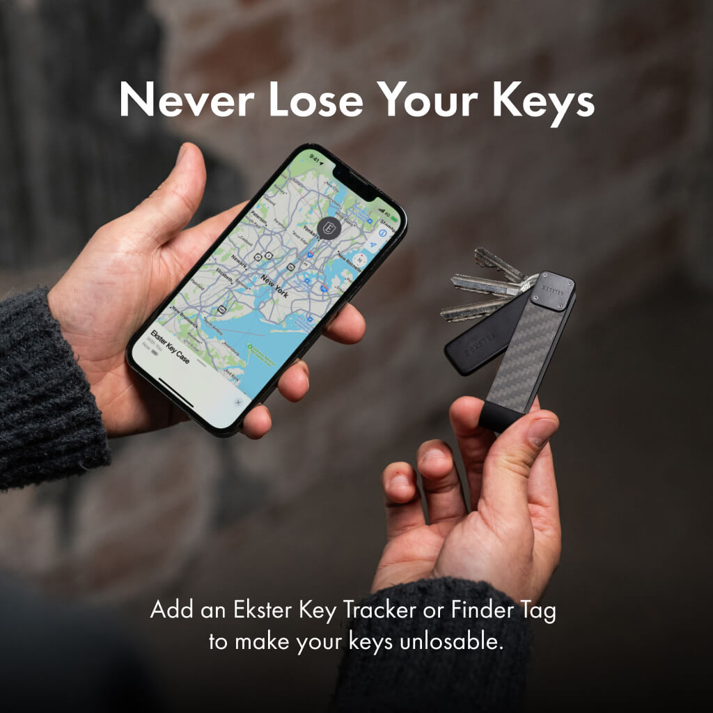 Make your keys unlosable with the Key Tracker (options available for Apple and Android users). It fits inside the metal key case and shows your keys’ location on your phone.