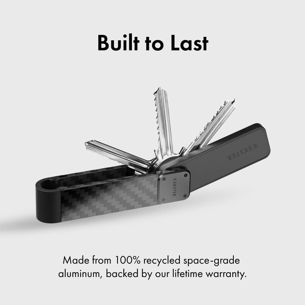 Just like the Cardholder Pro, the metal key holder is made from recycled 6061-T6 aluminum and backed by our lifetime warranty. It's as durable as it gets.
