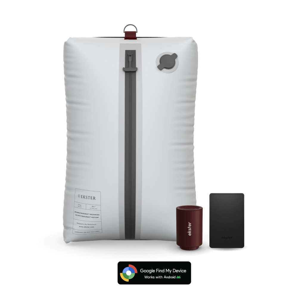 The Ekster TravelPack Vacuum Bags outperform cheap vacuum kits and are better than using no travel vacuum bags. Ekster's vacuum travel bags save packing space, fit in any size travel bag, keep clothes waterproof and odor-proof, and work with a portable air pump or any vacuum cleaner.