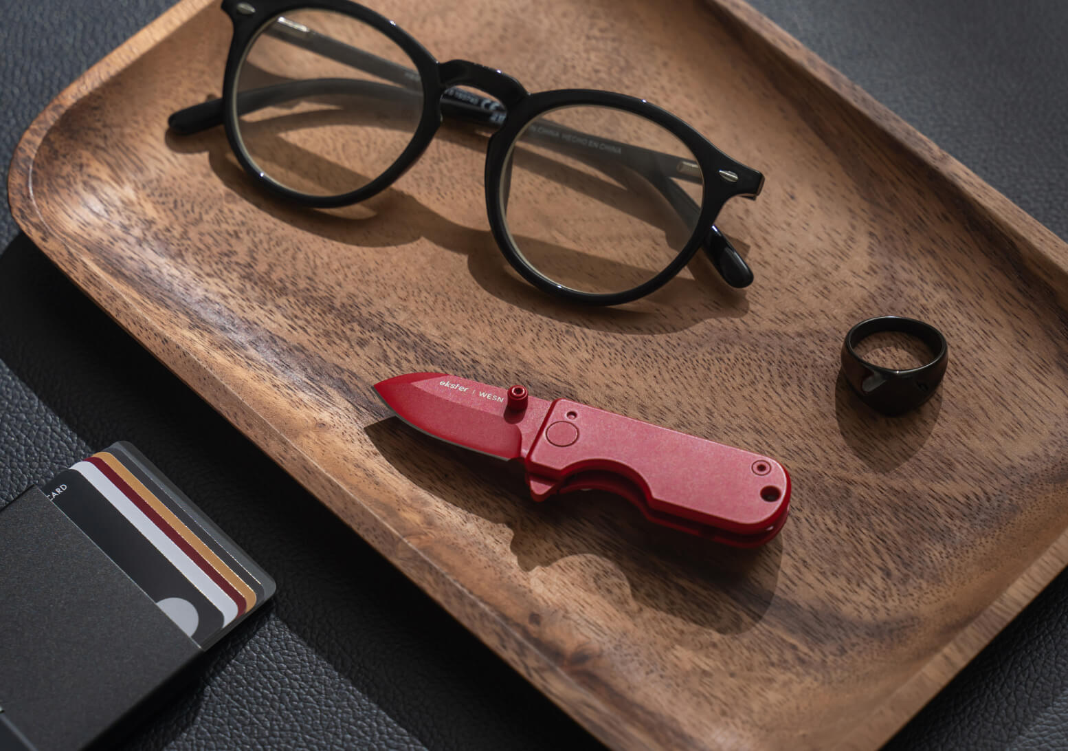 Meet the Ekster × WESN Microblade. This tiny pocket knife fits on your keychain but cuts like a full-sized knife.